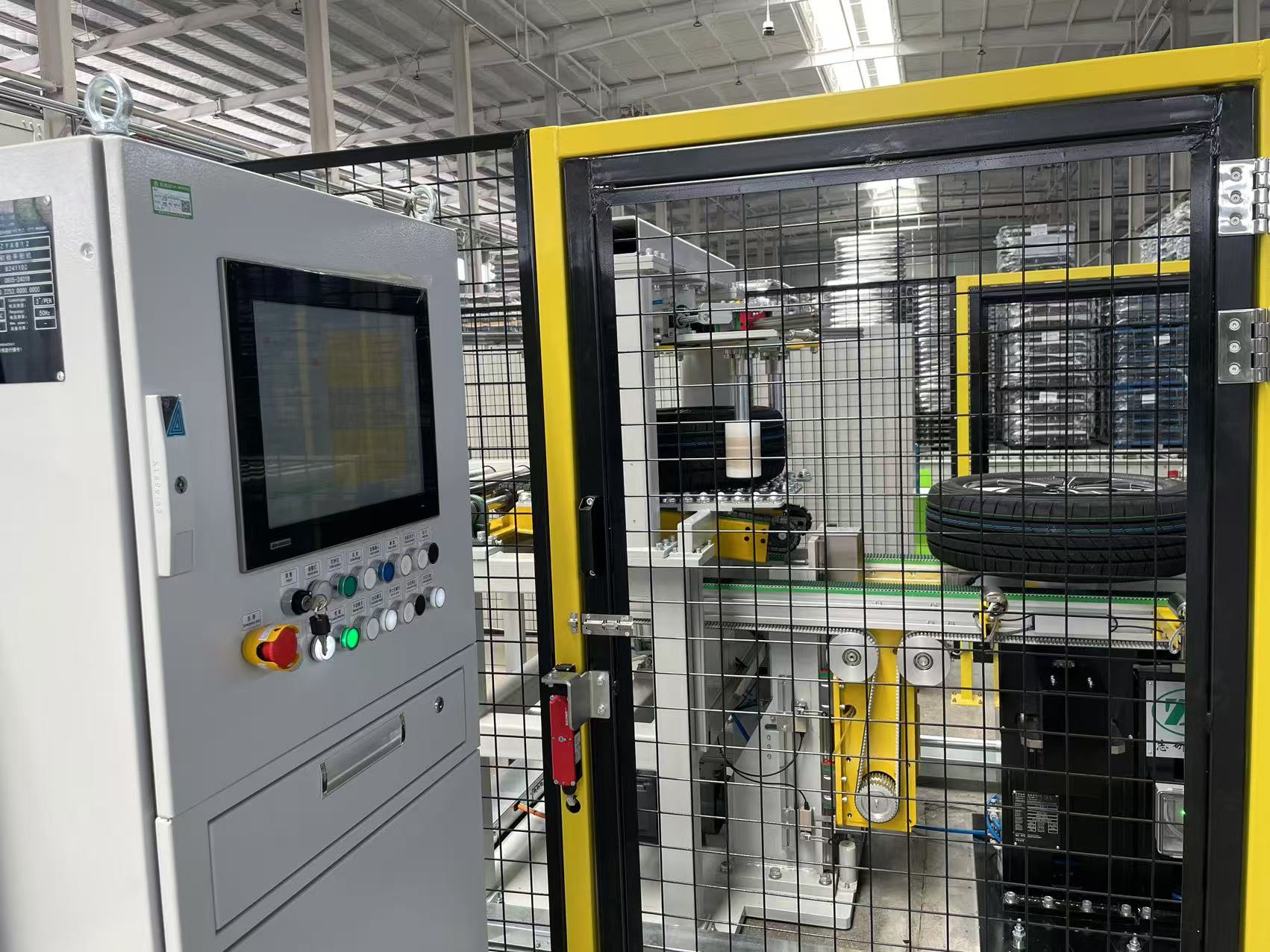 1.输送机构送入轮胎,抱中后,输送到主轴检测工位;